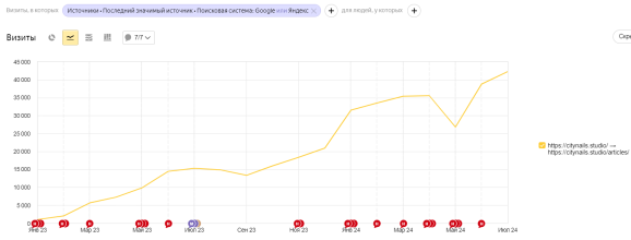4) Увеличение информационного трафика на раздел «Статьи» из поисковых систем: