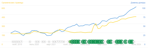 5) Улучшился рейтинг домена сайта за счет работы со ссылочным профилем: