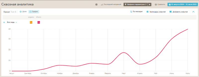 Мы разработали SEO‑оптимизированный сайт. Уже в первые месяцы он начал показывать планомерный рост по органике: страницы индексировались, трафик увеличивался. Однако бизнесу этого было недостаточно — требовался быстрый рывок в лидах. Необходимо было построить систему, которая обеспечит рост органики и лидов, а также позволит бизнесу резко увеличить количество заявок за короткий срок.