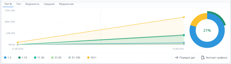 Количество запросов в ТОП‑10 увеличилось более чем на +60%.