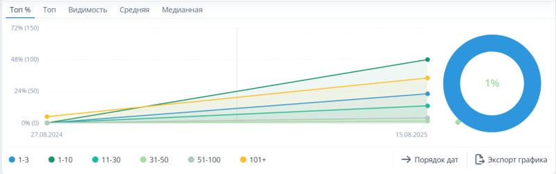 Решение: с помощью Топвизора выявили слабые группы, точечно оптимизировали мета‑теги и тексты, усилили внутреннюю перелинковку.