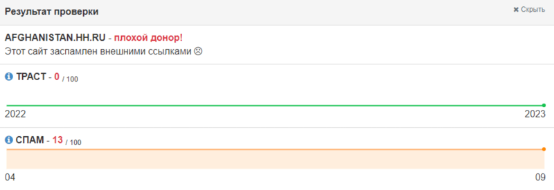 Ссылки на сайт были размещены на некачественных донорах с высоким спамом и низким трастом.
