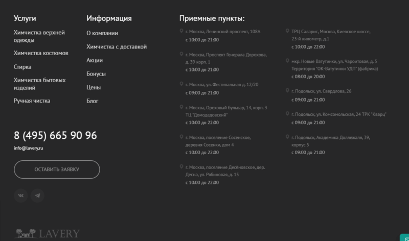 Клиент: Lavery – сеть химчисток в Москве и МО.