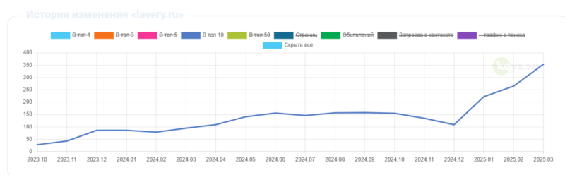 Сеть химчисток в Москве и МО Lavery основана в 2007 году. С 2020 года осуществляется доставка от приемных пунктов по Москве и МО, сеть активно развивается и открывает новые приемные пункты. Компания открыта уже продолжительное время, но сайт не был оптимизирован и занимал практически нулевые позиции в поисковых системах. Lavery обратились за SEO‑оптимизацией и продвижением, с целью повысить показатель ТОП‑10 в поисковых системах, а также увеличить количество поискового трафика.