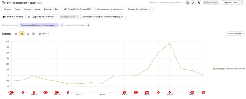2. Проверка статистики Яндекс Метрики, на выявление спам‑трафика, анализ поведенческого трафика и т.п.