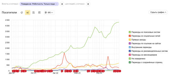 Статистика посещаемости сайта по данным Яндекс.Метрики