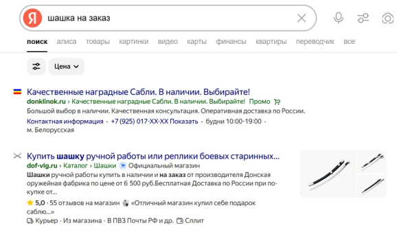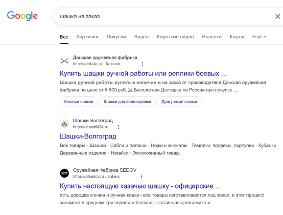• Улучшение позиций по точечным товарным запросам, ведущим на конкретные карточки, например, «шашка рядовая 1881 года».