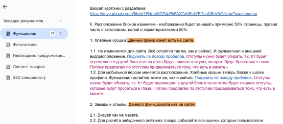 После проведенных анализов, собрали требования для команды, которая будет задействована в редизайне карточки. Наша задача не ограничивалась «поправить SEO». Мы готовили полноценные ТЗ по всем направлениям: