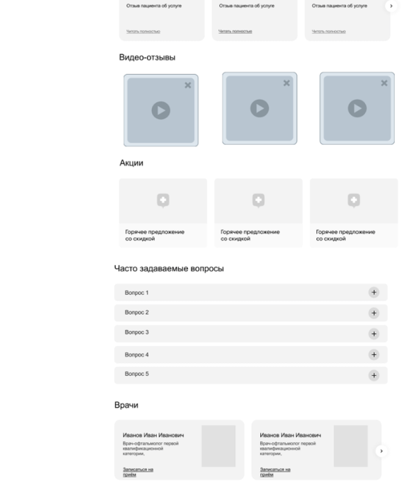 На при продвижении медицинских клиник крайне важно проработать страницы услуг. На основе анализа конкурентов Дарья подготовила прототипы, которые мы передали команде заказчика для отрисовки дизайна и внедрения на сайт.