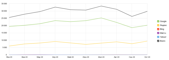 Вышли на пиковую посещаемость уже к Июлю 2024, то есть даже меньше, чем за год. И удерживаем эти цифры, даже в период низкой сезонности: