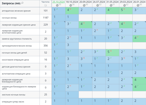 Например, вывели на отдельную страницу кластер запросов по “Замене хрусталика”, что позволило выйти в ТОП‑5 по всем целевым запросам в Яндексе и в Google
