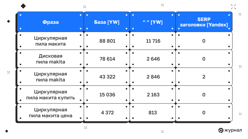 Сначала собираются реальные формулировки из Яндекс Вордстата, подсказок и конкурентов. И только после этого они сопоставляются с продуктом, а не наоборот.