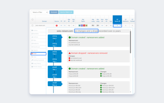 Дальше важно убедиться, что после «смерти» сайт не успели использовать под казино, адалт или другие заспамленные ниши. Тут помогает Spamzilla — по истории видно, что у домена было всего два дропа за 18 лет. Это хороший знак.